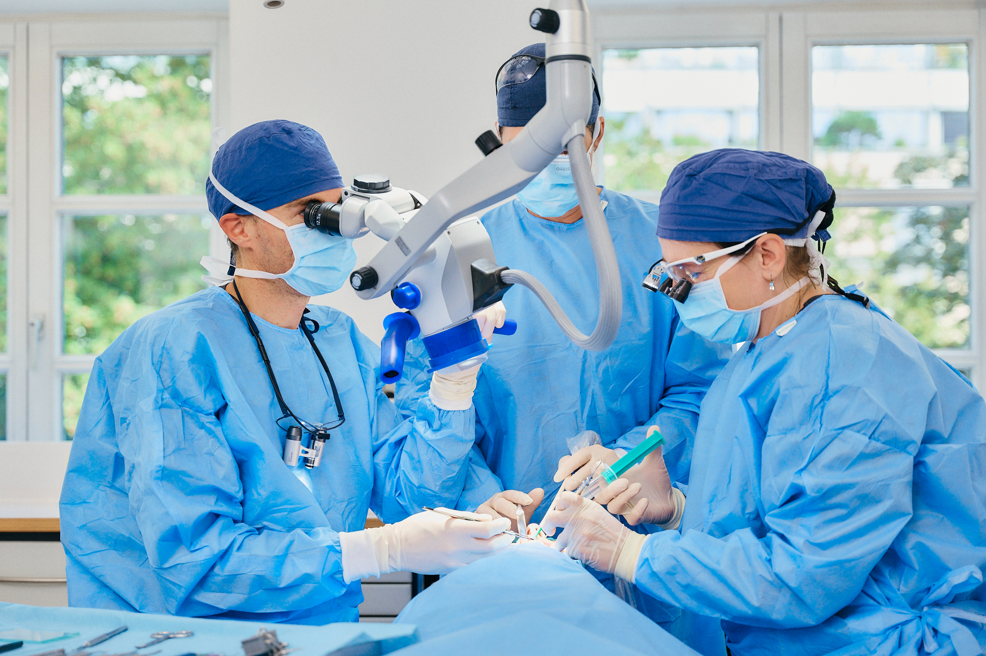 Der Einsatz des Mikroskops bietet Patienten einen weiteren Vorteil: Es ermöglicht dem Chirurgen eine bessere Haltung, entlastet Rücken und Nacken und hilft ihm, dauerhaft konzentriert und genau zu arbeiten – insbesondere bei größeren und längeren Eingriffen.